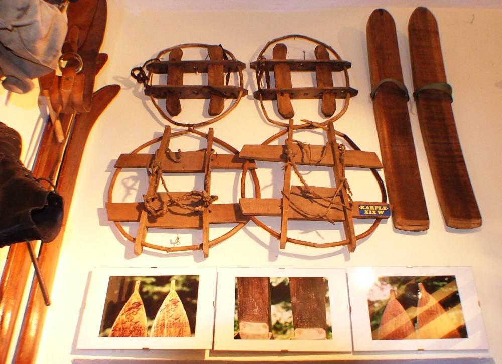 Wisła, fregmant ekspozycji Muzeum Narciarstwa - "karple" (rakiety śnieżne), foto Adam Brzoza Archiwum UM Wisła